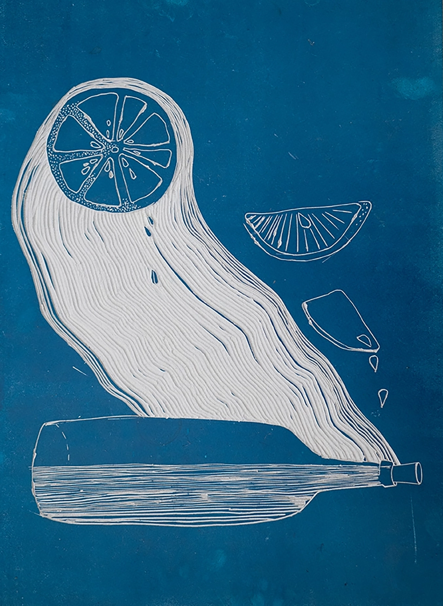 spalvotas lino raižinys. citrus. 420×594 mm. 2025